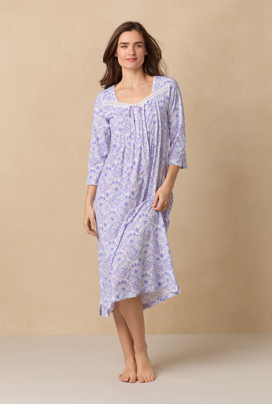 Purple Paisley 3/4 Sleeve Cotton Short Nightgown