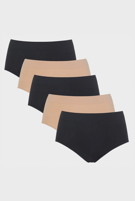 5Pk Seamless Brief - Black And Sand