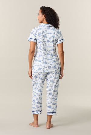 An essential for warmer nights, this women’s cotton pajama set includes a short sleeve top and cropped capri pant. The fabric’s soft jersey texture feels cool and breathable, while the White Countryside print adds a serene, spring-inspired touch. A timeless look for effortless comfort at home.